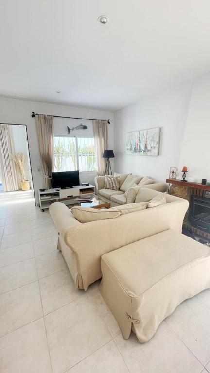 Es gibt ein gemütliches Wohnzimmer mit Sofa und Satelliten-TV (keine spanischen Sender, nur einige internationale), WLAN und einen hellen verglasten Essbereich mit Blick auf den Pool.