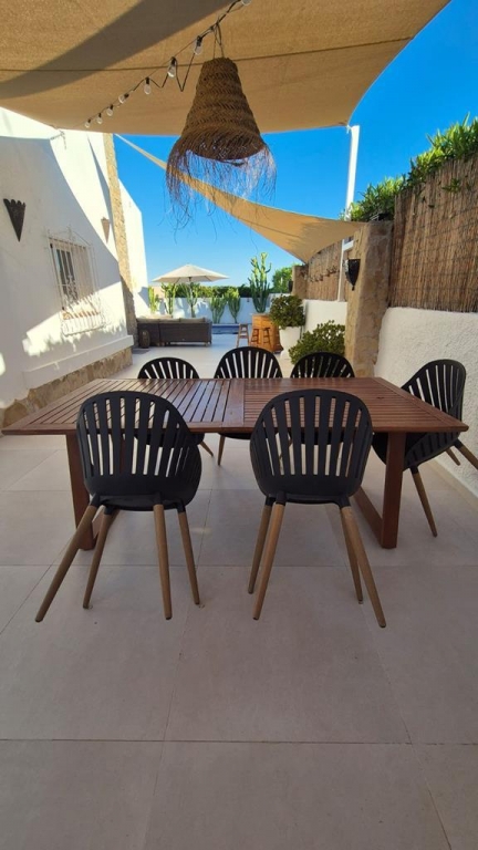 Der Außenbereich ist sehr angenehm und sonnig, perfekt zum Entspannen. Die Terrasse ist ausgestattet mit Gartenmöbeln, Tisch und Stühlen, Grill, Außendusche und einem schönen privaten Pool von 12 x 3 m, mit leichtem Meerblick.