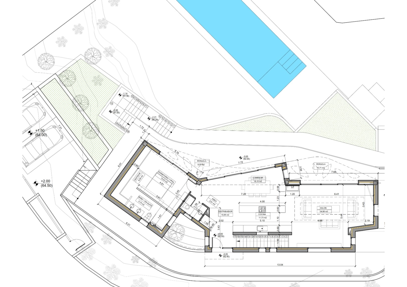 In der Urbanisation Tosalet 5 in Jávea wird derzeit eine moderne Luxusvilla mit Blick über die grünen Hügel bis zum Meer gebaut. Diese Neubauvilla kombiniert klare Linien und sanfte Rundungen, was ihr ein stilvolles und zeitloses Aussehen verleiht.